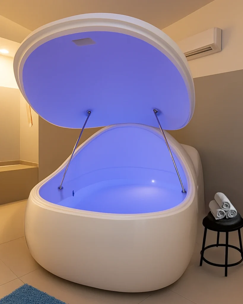 Desconéctate del mundo y sumérgete. En la cámara de flotación de privación sensorial, el silencio, la luminosidad y la oscuridad crean un remanso de profunda paz. Una experiencia de relajación absoluta, reconexión y equilibrio entre cuerpo y mente.